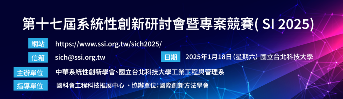 - 主辦單位:中華系統性創新學會、國立台北科技大學工業工程與管理系