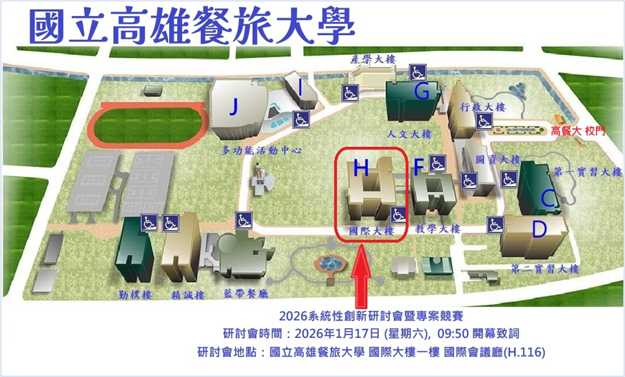 研討會地點:國立高雄餐旅大學 國際大樓一樓 國際會議廳(H.116)
